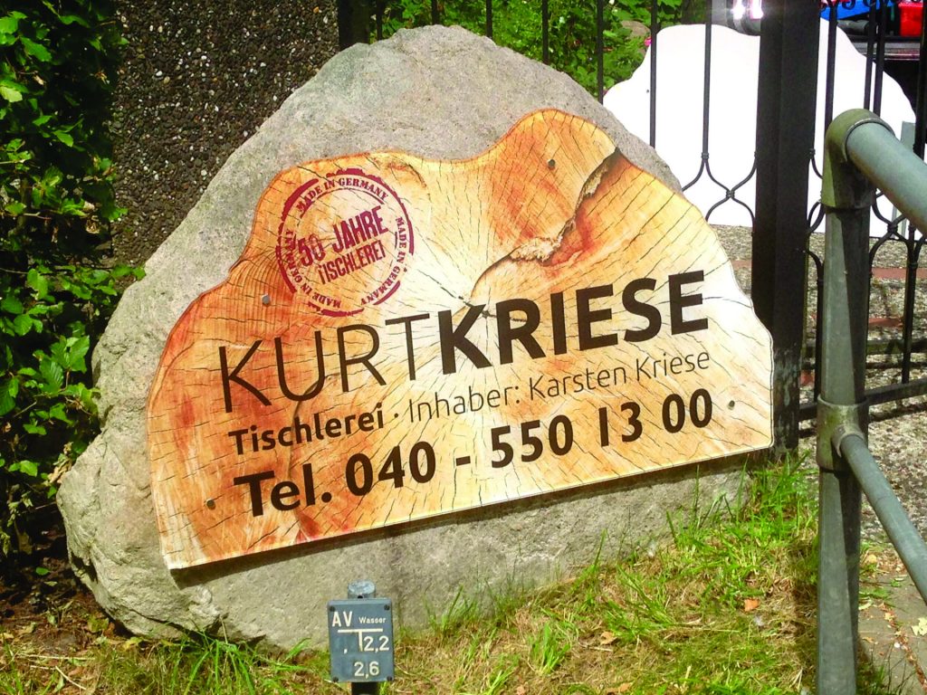 Hochwertige Schilder aus Aluminium-Dibond und Edelstahl.