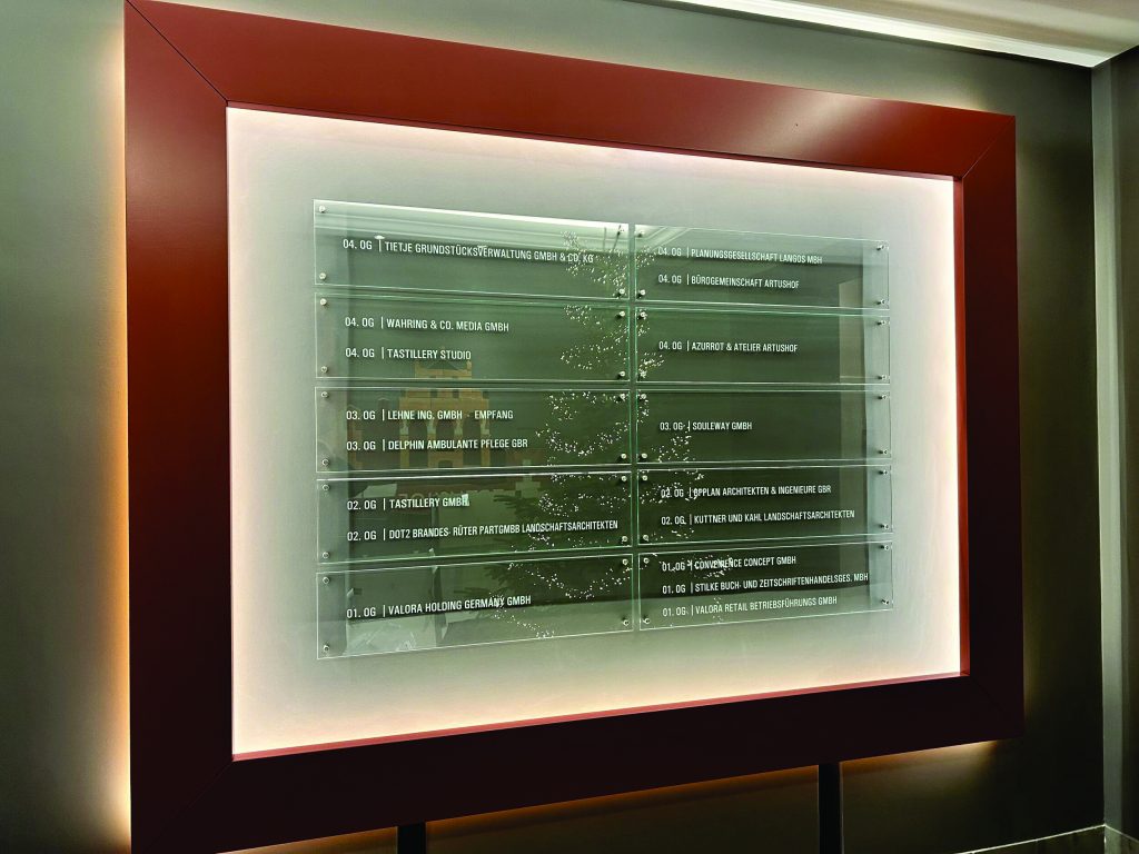 Unser Full Service umfasst die Gestaltung, Produktion und Montage von Firmenschildern, Praxisschildern, Außenwerbung und Innenbeschilderung. So setzen wir Ihre Marke professionell in Szene und sorgen für eine langlebige, auffällige und wirkungsvolle Präsentation Ihres Unternehmens.